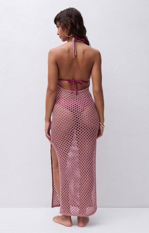 Abito mare lungo Chantelle che dona una silhouette di tendenza e audace. Linea Metallic è realizzata in un'ampia rete lurex, perfetta per brillare quest'estate. Modello dalla linea aderente con scollatura profonda a V e schiena scoperta. Chiusura con fiocco al collo.